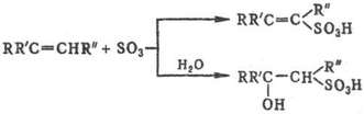 Легко реагируют с SO3 и его комплексами алкены, которые образуют в зависимости от структуры и условий b- или d‑сультоны (см. Сулътоны) либо a, b- или b, g‑ненасыщ. сульфокислоты, а также b‑гидроксисульфокис-лоты, напр.: