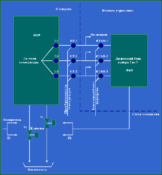 Система пневматики, обеспечивающая привод обоих пневматических клапанов, работает надежно и рассматриваться не будет. Внешние явления, такие как землетрясения, пожары, наводнения не рассматриваются в данном примере.
