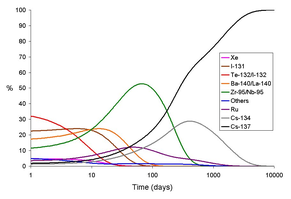 В настоящее время (и в ближайшие десятилетия) наибольшую опасность представляют изотопы стронция и цезия с периодом полураспада около 30 лет.
