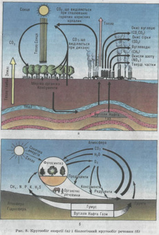Насамперед пригадаємо, що найголовнішою формою функціонування екосистеми є кругообіг речовини, енергії та інформації - процес багаторазової участі речовин (біогенних і абіогенних) в явищах циклічного характеру, що відбуваються в атмосфері, гідросфері й літосфері.