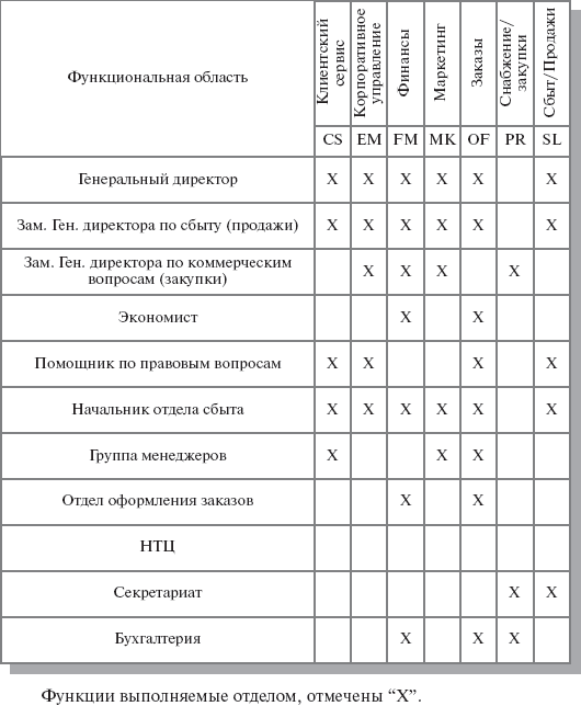 Ниже приведен пример описания фрагментов организационно-функциональной модели производственного предприятия рис. 1.14 и торгового предприятия рис. 4.15. Приведенные матрицы проекций являются основой для выделения бизнес-процессов предприятия и их владельцев на последующих этапах создания ИС.