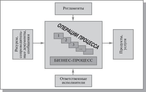 Шаблон потокового процессного описания приведен на рис. 4.11. Такое описание дает представление о процессе последовательного преобразования ресурсов в продукты усилиями различных исполнителей на основании соответствующих регламентов.