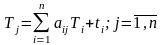 Введем понятие полных затрат труда как суммы прямых затрат живого труда и затрат овеществленного труда, перенесенных на продукт через израсходованные средства производства. Если обозначить величину полных затрат труда на единицу продукции j-го вида через Tj, то произведения вида aijTi отражают затраты овеществленного труда, перенесенного на единицу j-го продукта через i-e средство производства; при этом предполагается, что коэффициенты прямых материальных затрат аij выражены в натуральных единицах. Тогда полные трудовые затраты на единицу j-го вида продукции (коэффициент полной трудоемкости) будут равны