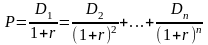 тобто курсова вартість оцінюється сумою всіх дисконтованих доходів. Так, ціна привілейованої чи простої акції з відомим розміром дивіденду визначається як поточна вартість «вічної» облігації, тобто
