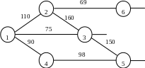 На транспортной сети по соответствующему варианту выделяются узлы, в которых размещены производственные мощности и потребители запасных частей. Далее непосредственно по сети рассчитываются кратчайшие расстояния между каждым пунктом производства и потребления.