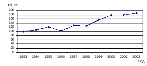 Таблица 3 - Динамика производства продукции промышленными предприятиями области за 1993 - 2002 г. г.