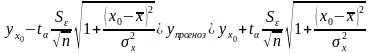 Зная дисперсию результативного показателя у и задаваясь уровнем доверительной вероятности, определяют доверительные границы прогнозного значения результативного признака упрогноз при значении факторного признака хо по формуле: