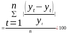 MAPE – средняя абсолютная ошибка в процентах (mean absolute percentage error – среднее относительное отклонение);