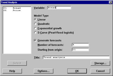 Model Type: определяется тип модели для аппроксимации тренда временного ряда. В используемой программе Minitab рассматриваются следующие четыре типа моделей: