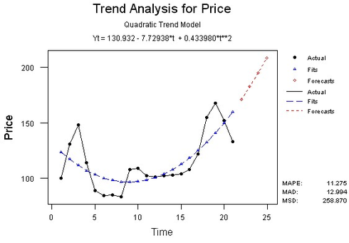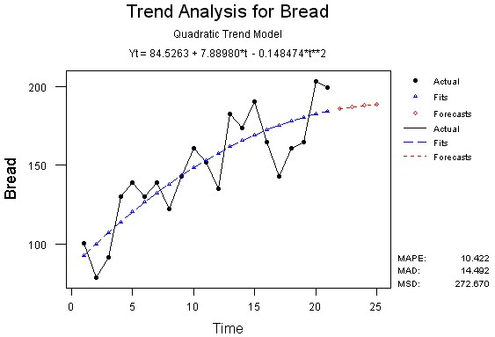 Yt = 84.5263 + 7.88980*t - 0.148474*t2