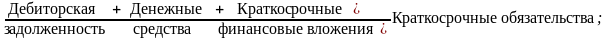 Кс — показатель соотношения краткосрочных обязательств и наиболее ликвидных активов, этот коэффициент является обратной величиной показателя абсолютной ликвидности;