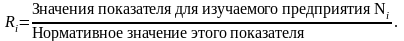 Для каждого коэффициента определяют его нормативное значение с учетом специфики отрасли, сравнивают с показателем на предприятии и вычисляют значение функции N: