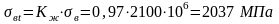 - временное сопротивление материала обечайки с учетом нагрева, которое равно