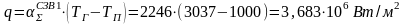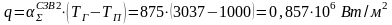 Суммарный тепловой поток от газа в стенку КС и сопловой крышки