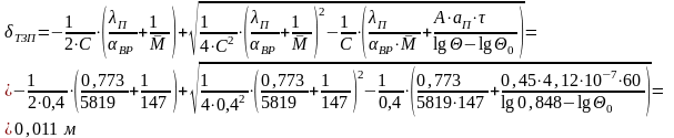 Расчет толщины теплозащитного покрытия вкладыша сопла