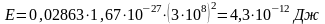 Очень важно то, что здесь возникает дефект массы: масса ядра гелия равняется 4,00389 а.е.м., тогда как масса четырех протонов 4,03252 а.е.м. За формулой Эйнштейна вычислим энергию, которая выделяется во время образования одного ядра гелия: