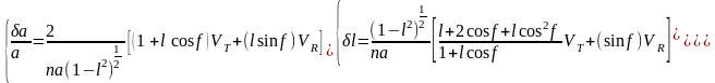 Восстановление поля скоростей осколков, образовавшихся при образовании семейства. Структура семейств в пространстве собственных элементов используется, чтобы получить информацию относительно скоростей выброса фрагментов в формирующих семейства событиях. Мы можем интерпретировать различия в орбитальных элементах в терминах различий в скорости выброса из первоначального родительского тела. Преобразования скоростей в орбитальные элементы или наоборот даются Гауссовыми формулами, которые могут быть записаны следующим образом, согласно предположению, применимому для семейств, что скорости выброса являются намного меньшими, чем орбитальная скорость родительского тела.