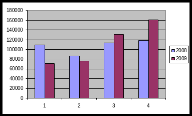 | Квартал | 2008 год | 2009 год |