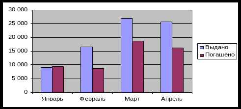Месяц | Выдано | Погашено |