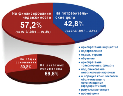Наряду с традиционными для банковского сектора направлениями работы на рынке розничных услуг (привлечение денежных средств населения, кредитование, валютно-обменные операции, расчетно-кассовое обслуживание) банки перешли к предоставлению своим клиентам комплексных услуг и продуктов. В республике активно стало развиваться кредитование населения, особенно потребительское. Банки совместно с торговыми организациями начали широко внедрять кредитные проекты по продаже товаров в кредит, а также новые технологии по экспресс-кредитованию. В результате объем кредитной задолженности физических лиц с 1 января 2001 г. по 1 января 2006 г. увеличился в 24 раза и составил 3,3 трлн. рублей, а объем потребительского кредитования за этот период возрос в 103,1 раза. Если на начало 2001 года потребительские кредиты составляли 8,8 процента в общем объеме кредитной задолженности физических лиц, то на 1 января 2006 г. – уже 37,7 процента. [7]