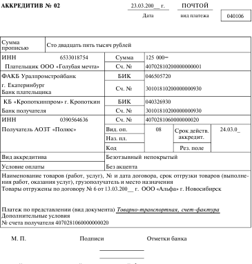 ЗАЯВЛЕНИЕ НА АККРЕДИТИВ №