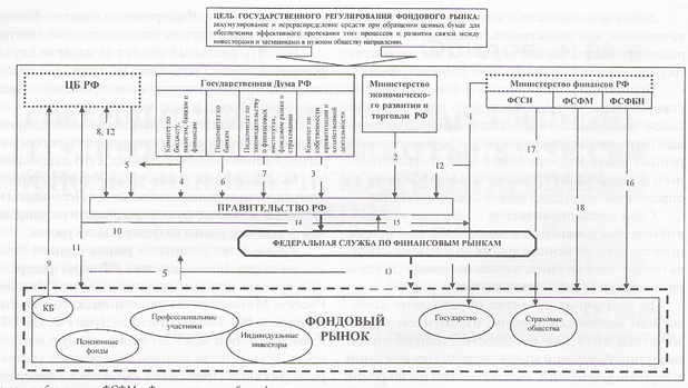 Цифры на стрелках указывают не последовательность выполнения механизма государственного регулирования фондового рынка, а его содержание.