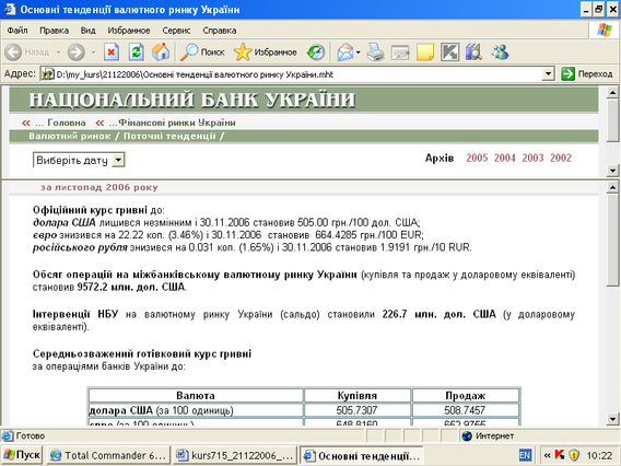 євро знизився на 22.22 коп. (3.46%) і 30.11.2006 становив 664.4285 грн./100 EUR;