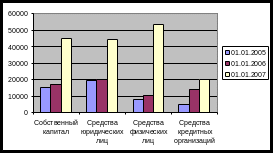 По данным таблицы видно, что объем чистых активов стабильно растет. Если на 01.01.2005г. их сумма составила 47847 тыс. руб., то на 01.01.2007она возросла до 164185 тыс. руб.