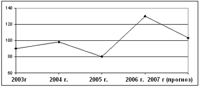 На рис. 4 выделим динамику соотношения страховых выплат по страхованию жизни к сумме страховых взносов в 2003-2007 гг.