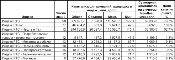 Результаты анализа основных индексов РТС целесообразно представить в виде следующей таблицы.