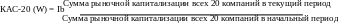 Средневзвешенный индекс КАС-20 (W) определяется следующим образом: