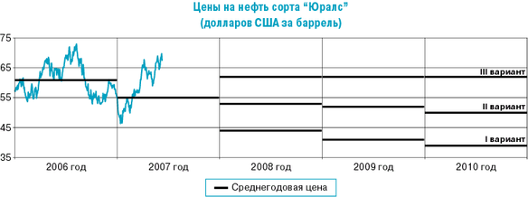 В рамках третьего варианта предполагается, что цена на российскую нефть в 2008 году повысится до 62 долларов США за баррель.