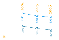 Согласно данным рисунков, показатель чистой процентной маржи после формирования резервов на обесценение процентных активов к средним процентным активам несколько снизился — с 3,1 % в 2005 году до 2,5 %в 2006 году, Такое снижение обусловлено главным образом ростом средней стоимости процентных обязательств с 6,71 % за 2005 год до 6,87 %за 2006 год.