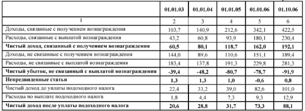 Данный рост произошел по операциям с производными финансовыми инструментами в иностранной валюте. В первом квартале 2006 года Банк осуществил заимствования в евро и сингапурских долларах. В результате значительного укрепления евро и сингапурского доллара в течение 2006 года образовался значительный объем дохода от переоценки этих производных финансовых инструментов.