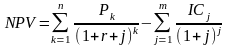 Цей метод заснований на зіставленні величини вихідної інвестиції (IC) із загальною сумою дисконтованих чистих грошових надходжень, генерованих нею протягом прогнозованого періоду. Загальна накопичена величина дисконтованих доходів (Present Value, PV) і чистий приведений ефект (Net Present Value, NPV= ЧДД – чистий дисконтований доход) відповідно розраховуються по формулах [57]: