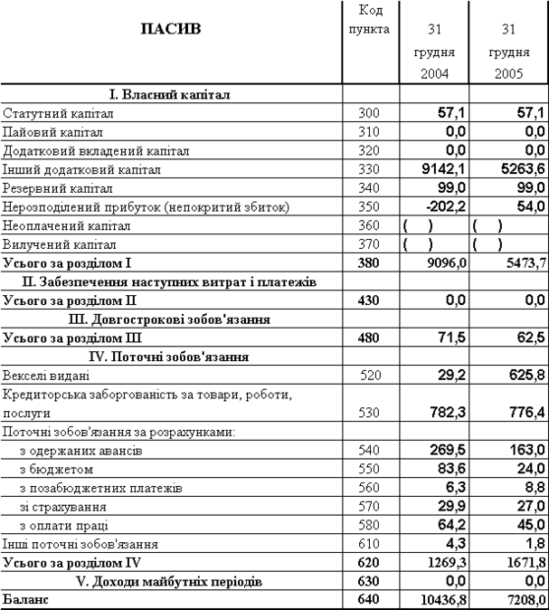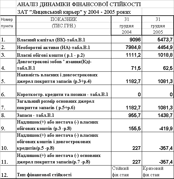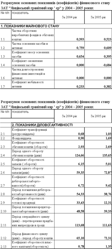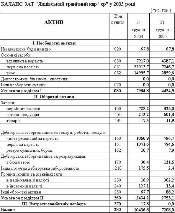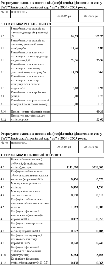 інансові результати ВАТ “Янцівський гранітний кар'єр” у 2004-2005 роках