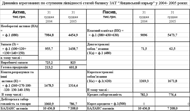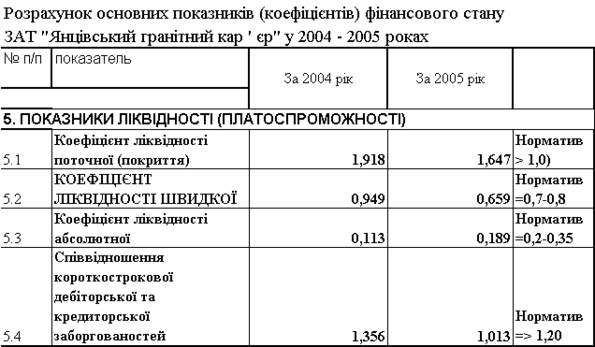| Коефіцієнт абсолютної ліквідності | 0,2 та більше | від 0,15 до 0,2 | менше 0,15 |