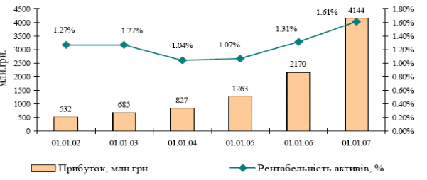 Аналізуючи динаміку зростання прибутку банківського сектору України та рівня рентабельності банків слід звернути увагу на рис. 1.9.