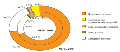 У структурі доходів банків у 2006 році відбулися такі зміни: