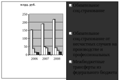 В 2007 году наблюдается повышение доходов от обязательного социального страхования от несчастных случаев на производстве и профессиональных заболеваний, что обусловлено не только фактическим ростом фонда оплаты труда, но также высоким коэффициентом полноты сбора страховых взносов (коэффициент сбора по страховых взносам составил 98,9% при запланированных 98%). В 2008 году доходы от этой статьи сократились. Это связано с использованием более низких тарифов и поступлений от пеней и штрафов.