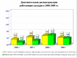 Дополнительная диспансеризация работающих граждан в 2009 году проводилась во всех субъектах Российской Федерации. В ее реализации принимало участие 3 555 учреждений здравоохранения муниципальной и государственной систем здравоохранения. Из них 1 238 (34,8%) – сельские учреждения здравоохранения, 2 317 (65,2%) – городские, так же для проведения дополнительной диспансеризации работающих граждан были организованы 243 выездные бригады.
