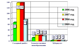 Снижение диагностики заболеваний эндокринной системы более чем в два раза по сравнению с 2008 годом связано с тем, что в 2009 году из списка специалистов, участвующих в проведении дополнительной диспансеризации, был исключен врач-эндокринолог.