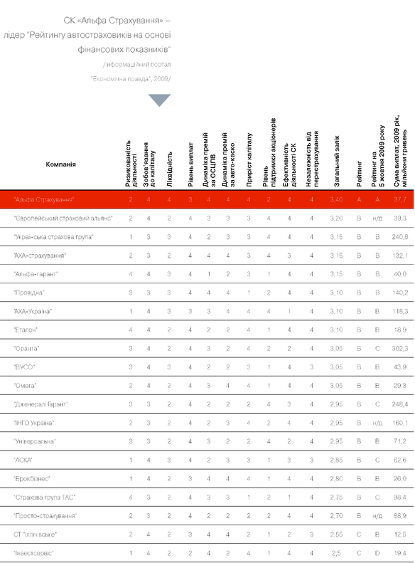 Компания СК «Альфа Страхование» заняла 3-е место по PR-активности страховых компаний во II кв. 2009 г. Об этом сообщил Центр информационной политики Лиги страховых организаций Украины (ЛСОУ). В комментариях событие названо самой большой сенсацией результатов исследования. Пресс-служба, последовательно поднимаясь по ступенькам рейтинга, потеснила лидеров-старожилов и впервые в истории компании взошла на третью ступеньку информационного пьедестала страхового рынка страны.