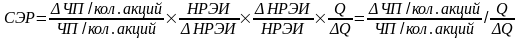 Эта концепция рассматривает эффект в виде приращения чистой прибыли (ЧП) на 1 обыкновенную акцию на приращение нетто-результата эксплуатации инвестиций (НРЭИ), то есть этот эффект выражает прирост чистой прибыли, полученный за счет приращения НРЭИ8: