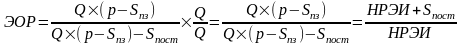 Например: Допустим в отчетном году выручка от реализации составила 10 млн.руб. при совокупных переменных затратах 8.3 млн.руб. и постоянных затратах 1.5 млн.руб. Прибыль = 0.2 млн.руб.