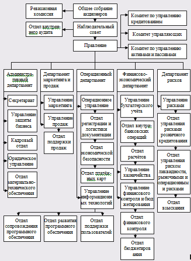 Таким образом, управление кредитными операциями сосредоточено в ряде подразделений банка, имеющих свой уровень компетенции, свои функции и задачи.