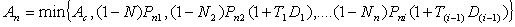 Pn1- предложение ресурсов на срок Т1 в первоначальный момент времени; Рn2 - предложение ресурсов на срок T2 в будущему за пройденное время; Рni -предложение ресурсов на срок Ti в будущем за пройденное время.