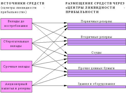 Метод размещения активов (или метод конверсии средств) основан на том, что размер необходимых банку ликвидных средств зависит от источников привлеченных средств.