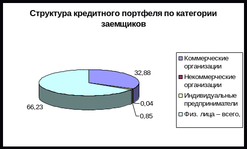 Данные по структуре кредитного портфеля представим в виде диаграмм 1 и 2, которые наглядно отражают все показатели.