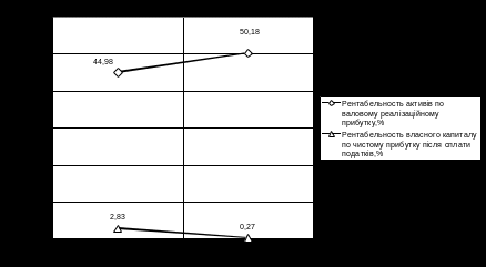 Аналіз рентабельності активів та власного капіталу ВАТ “Дніпропетровський хлібозавод № 6” показує (Додаток Е), що його діяльність може бути охарактеризована наступними показниками(рис.2.5):